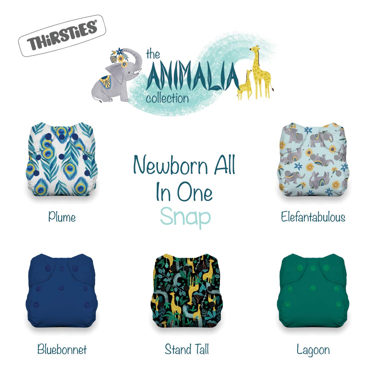 Thirsties Animalia Cloth Diaper Collection Package Snap Newborn All In One Cloth Diaper Animalia