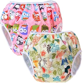 Teamoy Baby Swim Diaper 2 Pack Newborn Cloth Diaper Cover Jungle Owls Pink