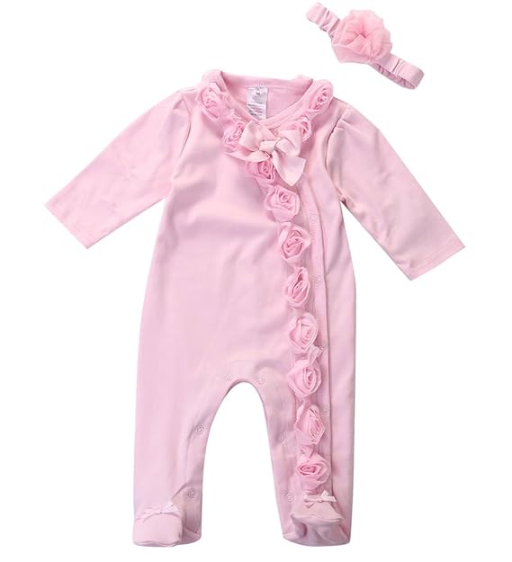 Newborn Girls Cotton Flower Clothes Baby Outfit Infant Romper Clothes With Head Band