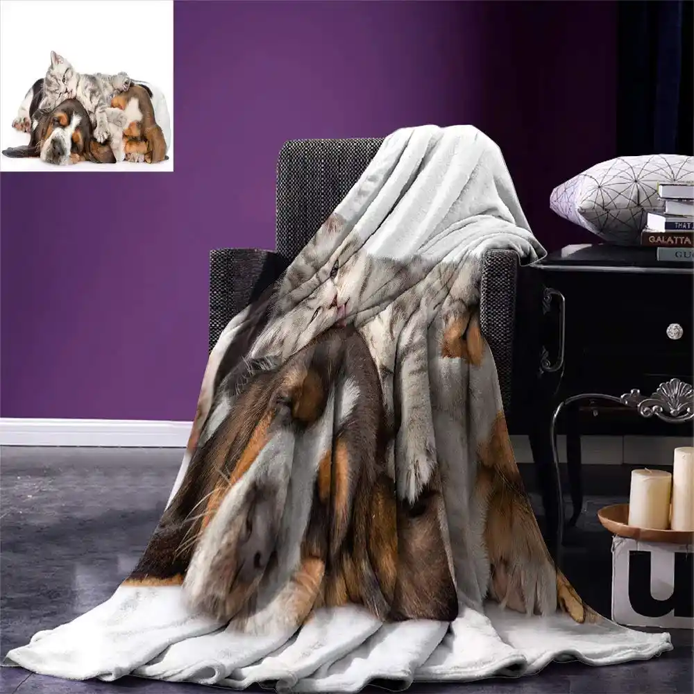 Funny Throw Blanket Newborn Kitten Lying On The Puppies
