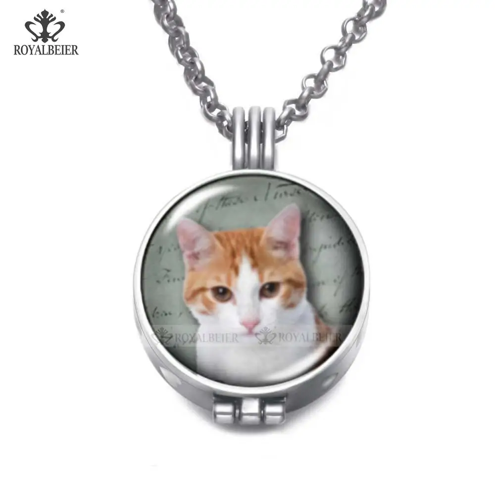 Infuseu Cat Pendant Necklace Aromatherapy Essential Oil Diffuser Jewelry Two Tone Locket With 12pcs Refill Replacement Pads Gold