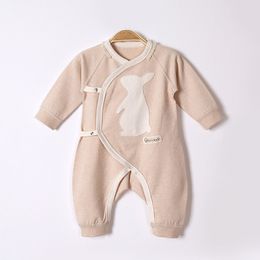 2017 Autumn And Winter Newborn Baby Clothes Baby Long Sleeved Jeans Cartoon Pattern Oblique Lapel Tie Color Cotton Baby Conjoined Clothing