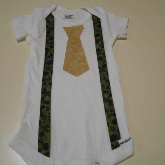 Camo Suspenders Tie Onesie Baby Boy Or Toddler Tan Newborn Clothing Clothes