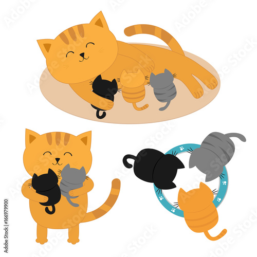 Cat Mother Feeding Kittens Mom Kitty Laying On