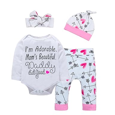 Us 4pcs Infant Newborn Baby Girl Outfits Clothes Romper Bodysuit Pants Leggings Size 0 3 Months