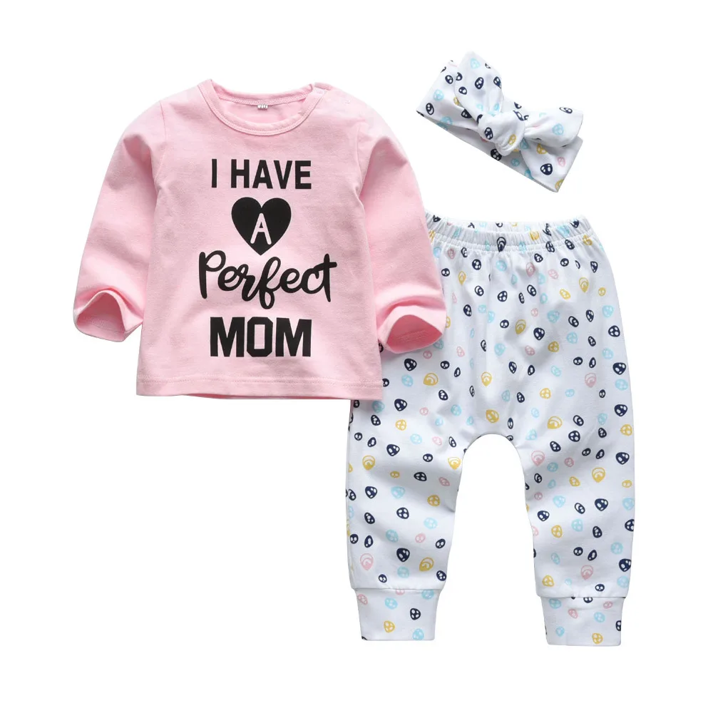 2019 Newborn Clothes Baby Girls Clothing Set Letter I Have A Perfect Mom Long Sleeve T Shirt Pants Hat Infant Toddler Outfits From Henryk 35 04