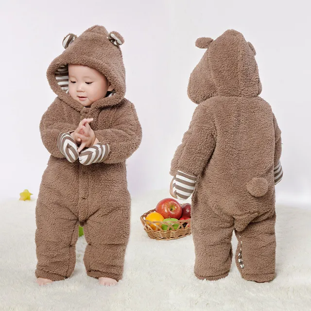 Details About Newborn Baby Boy Girl Bear Velvet Outfits Jumpsuit Romper Winter Warm Clothes