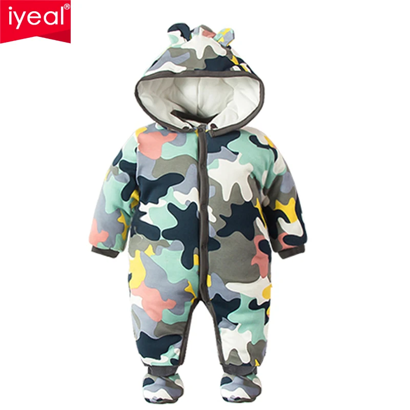 Us 23 98 35 Off Iyeal 2018 New Baby Rompers Winter Thick Warm Baby Boy Clothing Camo Long Sleeve Hooded Jumpsuit Kids Newborn Outwear For 0 12m In
