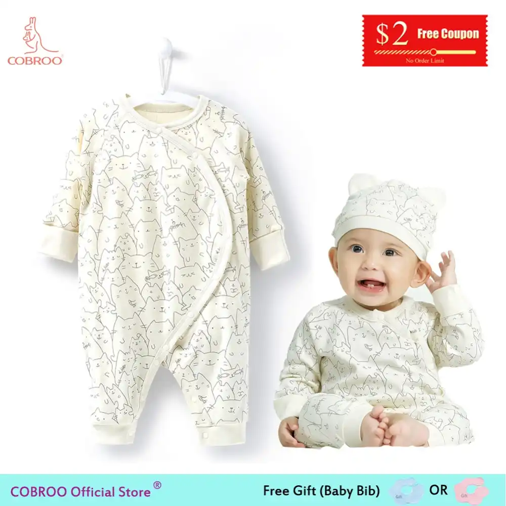 Us 12 96 49 Off Cobroo Newborn Baby Girl Overalls Children Baby Clothes Cute Kitty Cat Pattern Cotton Overalls Unisex Brown 0 24 Months Ny520019 In