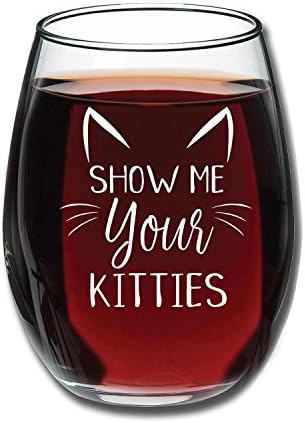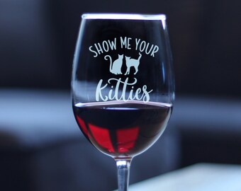 Show Me Your Kitties Funny Wine Glass 15oz Christmas Gift Idea For Cat Lovers Perfect Birthday Gift For Women Girlfriend Wife Gag Gift