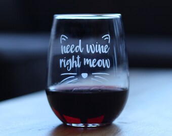 Need Wine Right Meow Cute Funny Cat Stemless Wine Glass Etsy