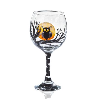 Hand Painted Owl Harvest Moon Wine Glass With Swarovski Crystals