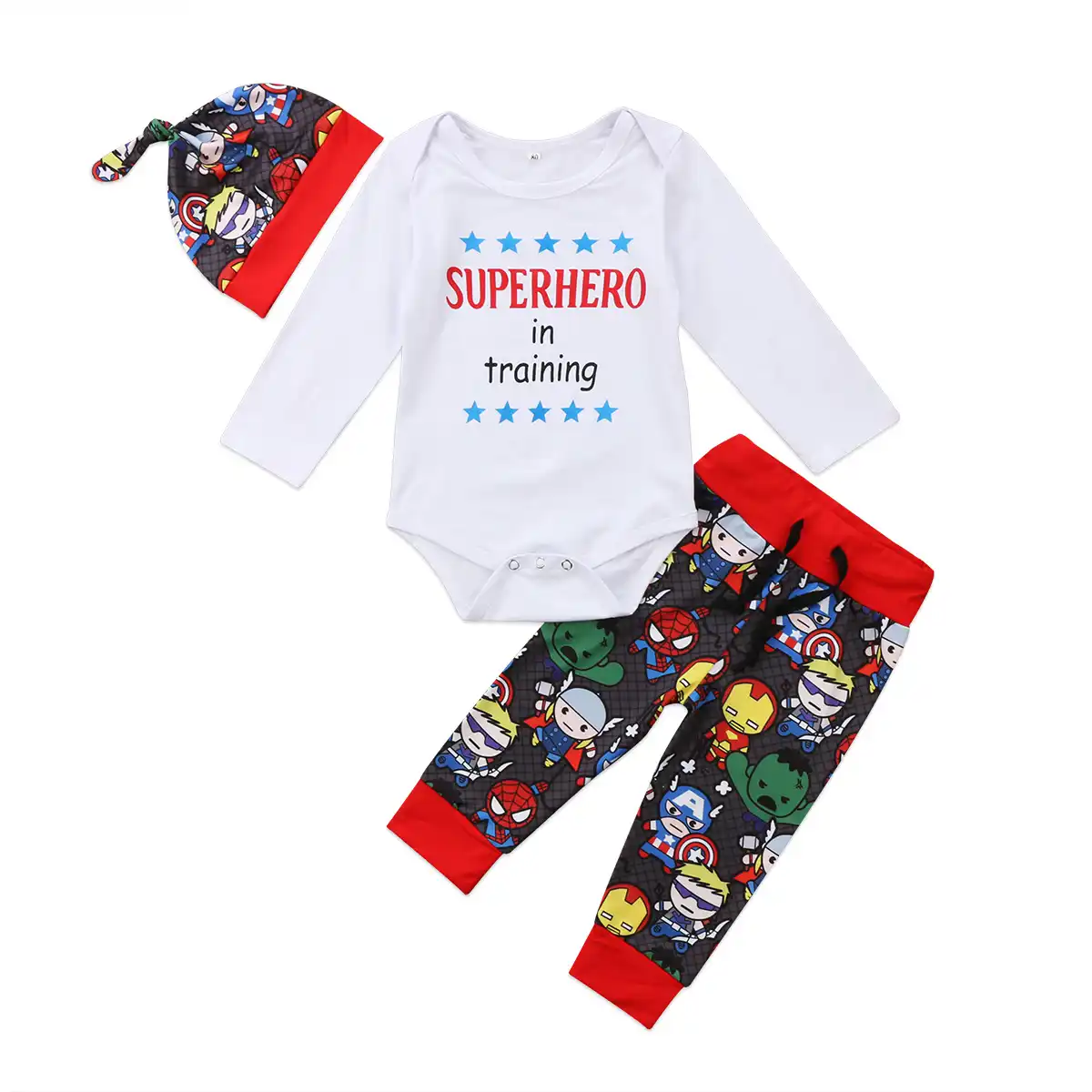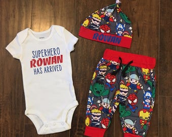 Superheros Baby Boy Outfit Newborn Boy S Avengers Inspired Set Hat Onesie Pants Baby Shower Gift Ideas Kids Clothes Outfits Sets