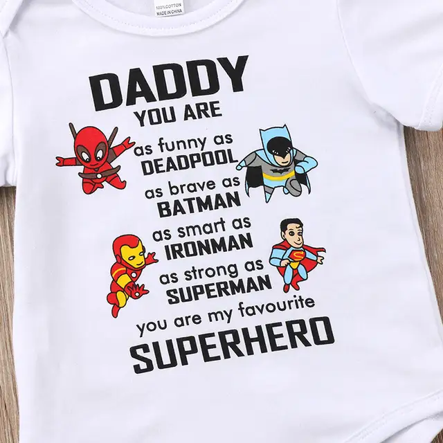 Newborn Baby Boy Girl Short Sleeve Romper Bodysuit Daddy You Are Superhero Toddler Baby Jumpsuit Infant Summer Outfit Clothes