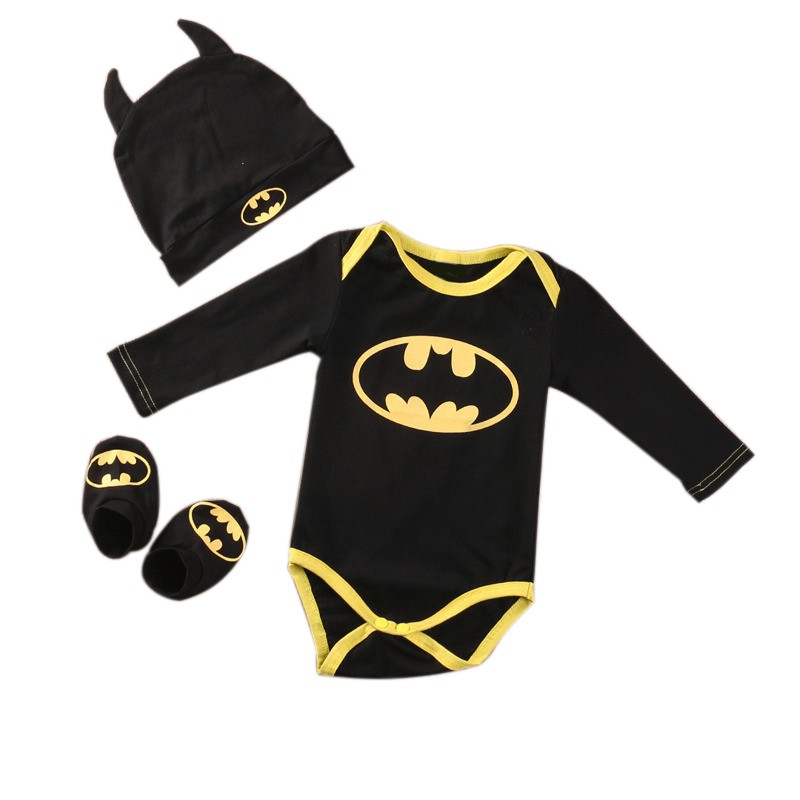 Baby Boys Clothes Set Cool Batman Newborn Baby Boy Romper Shoes Hat 3pcs 2019 New Bebes Outfits Clothes Body Suit For Newborns