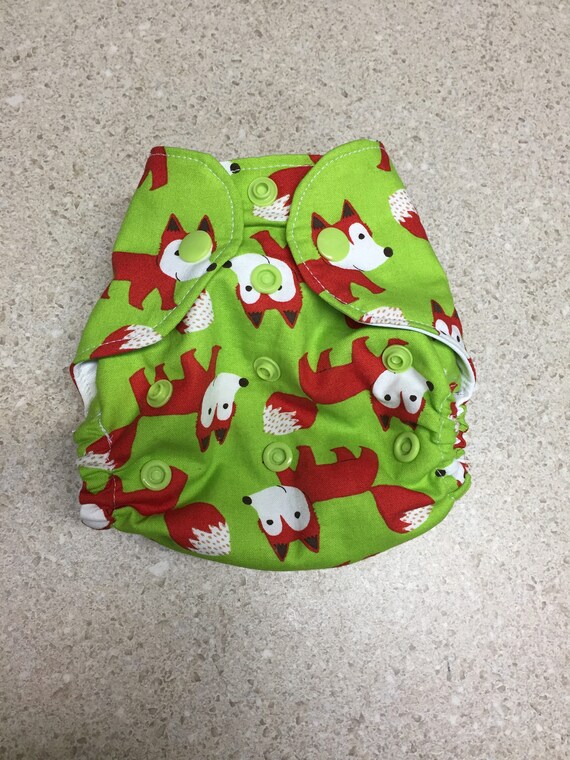 Newborn Diaper Cover Wipeable Diaper Cover Newborn Cloth Diaper Foxes On Green Nb Size Cloth Diaper