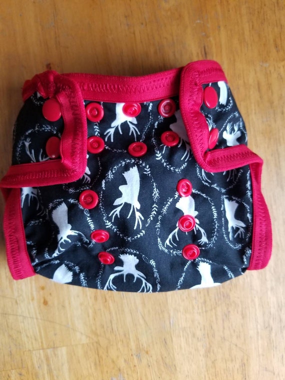 Red And Black Deer Print Newborn Cloth Diaper Cover