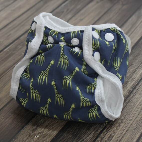 Giraffe In Denim Newborn Cloth Diaper With Umbilical Cord Snap
