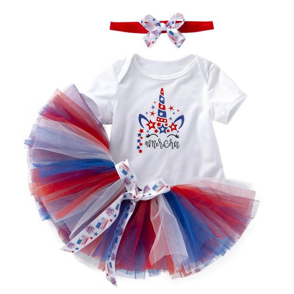 Unicorn Independence Day Newborn Outfits Baby Girl Clothes Short Sleeve Baby Romper Tutu Skirts Bows Headband Infant Sets Dress Suits A4312 Australia
