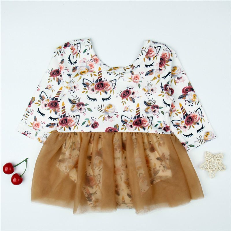 2019 2018 Newborn Clothes Kids Boutique Clothing Baby Girl Romper Dress Cotton Cute Unicorn Floral Romper Tulle Casual Dresses Baby Girl Clothes From