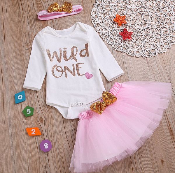 2019 Wild One Girls Boutique Outfits Kids Birthday Outfits Clothes Newborn White Letter Bodysuit Bodysuits Pink Grils Skirt Headband From Melee