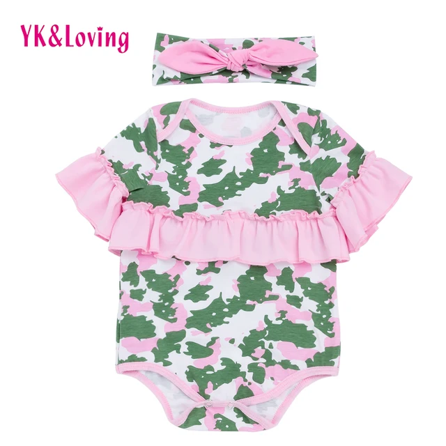 Us 9 5 39 Off 2018 New Ruffle Rompers Baby Newborn Girls Camouflage Cotton Clothes For Infant Toddler Girls 0 24m Fashion Outfit In Rompers From