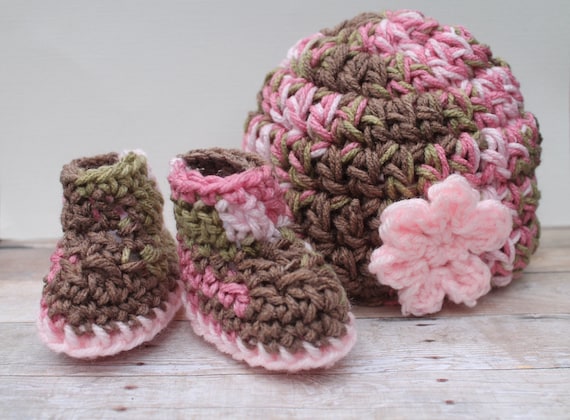 Camo Newborn Girl Clothes Baby Girl Hat And Bootie Set Infant Girl Take Home Set Baby Shower Gift Girl Baby Girl Beanie Baby Booties