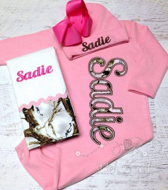 Baby Girl Personalized Baby Girl Clothes Newborn Girl Take Home Outfit Pink Camo Bodysuit With Pants Headband Options New Baby Gift Set