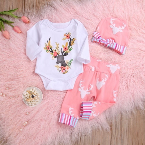 Newborn Infant Baby Girl Clothes Set Bodysuit Pants Hat