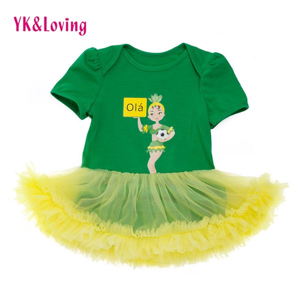 2019 Baby Girls Romper Dresses Cheerleader Soccer Jersey Games Clothes Newborn Girls Tutu Dress For Kids 0 2t Brazil Tracksuits Clothing Jumpsuit From