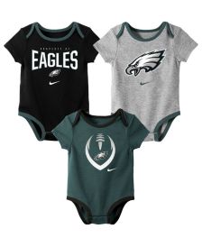 Newborn Infant Midnight Green Gray White Philadelphia Eagles Assist 3 Pack Bodysuit Set