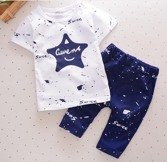 2019 Unisex Newborn Baby Clothing Set Boy Casual Suit 2018 Rushed New Star Printing Short Sleeve Trousers Sports Children Clothes From
