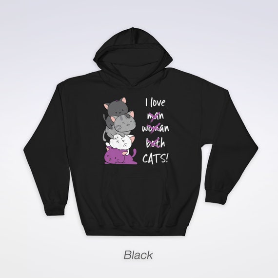 Asexual Pride Cats Anime Hoodie Cute Kitten Stack Kawaii Clothing Japan Harajuku Fashion Lgbt Ace Pride Hooded Sweatshirt For Cat Lover