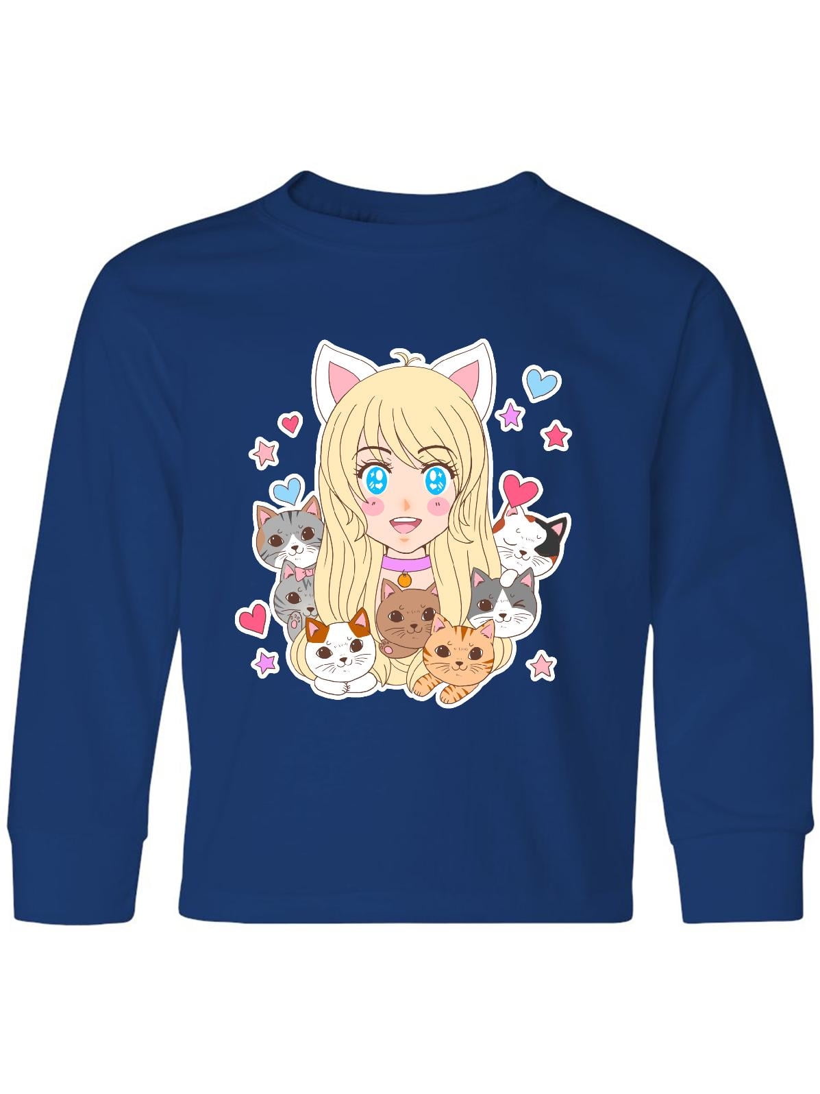 Inktastic Neko Anime Girl With Kittens Youth Long Sleeve T