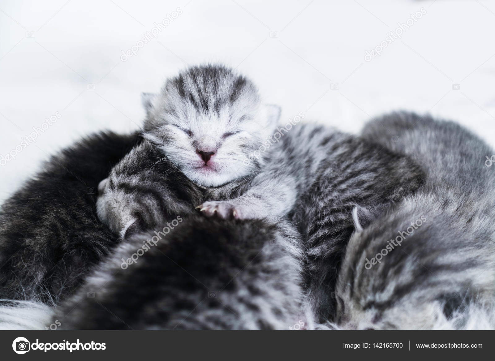 Beautiful Sleeping Newborn Kittens Blind Delicate Stock