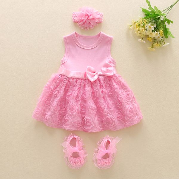 2019 Newborn Clothes Infant Baby Girls Twins Summer Dress Headband Shoes Set Party Baby Birthday Wedding Dress Shower Gift From Newyearable