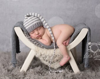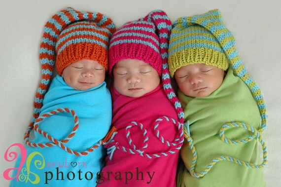 Newborn Knit Baby Hat Baby Photo Prop Unisex Boy Girl Hat Stripe Stocking Cap Pick Color Pixie Elf Hat Orange Pink Lime Aqua Munchkin Beanie