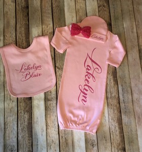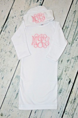 Custom Personalized Newborn Girl Hospital Baby Sleeper Gown Hat Monogrammed Ebay