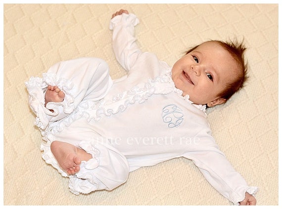All White Pima Cotton Ruffled Converter Gown Baby Girl Coming Home Outfit Newborn Baby Girl Pima Cotton Baby Baby Girl Designer Baby