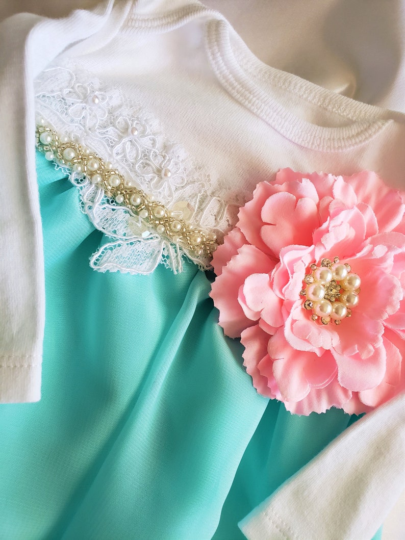 Newborn Girl Coming Home Outfit Designer Vintage Aqua Lace Sleeper Cute Baby Clothes Infant Girl Clothes Preemie Clothes