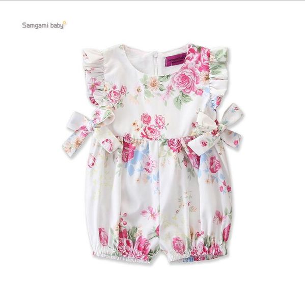 2019 Kids Designer Clothes Newborn Baby Girls Floral Romper Jumpsuit Summer Ruffle Short Sleeve Romper Bodysuit Baby Onesie Toddler Girls Clothes From