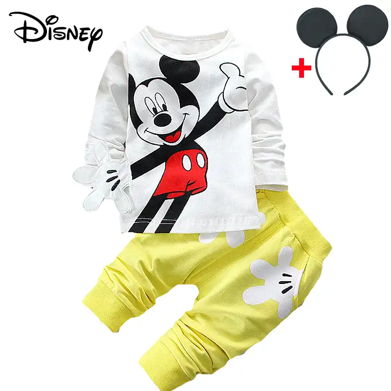 Disney Mickey Newborn Baby Girl Clothes Spring Autumn Set Cotton Kids Infant Clothing Long Sleeve Outfits Baby Tracksuit Sets