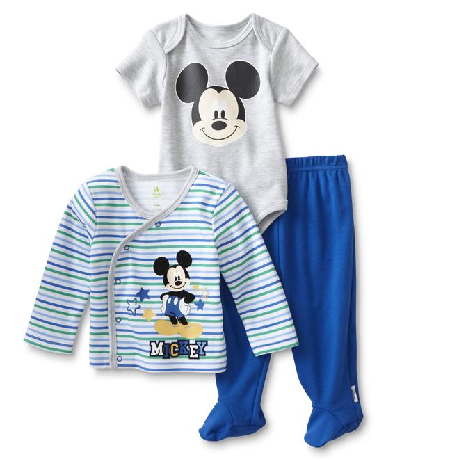Disney Newborn Boys Mickey Mouse Set Mickey Mouse 3 Peice Clothing Set Long Sleeve Onesie Vest And Sweatpants