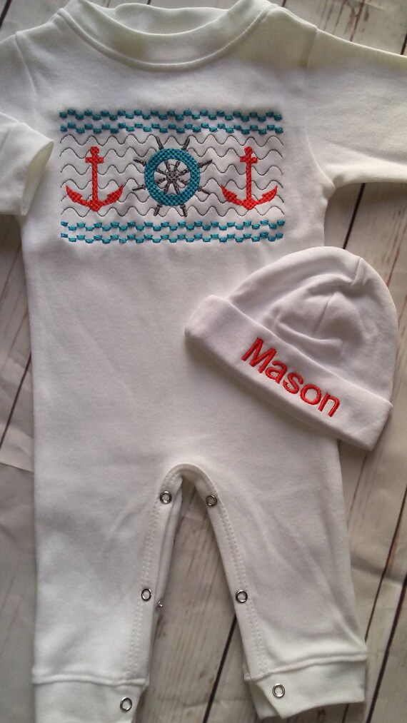 Newborn Boy Coming Home Outfit Baby Boy Hospital Outfit Take Me Home Newborn Baby Gift Baby Boy Clothes Personalized Newborn Hat Nautical