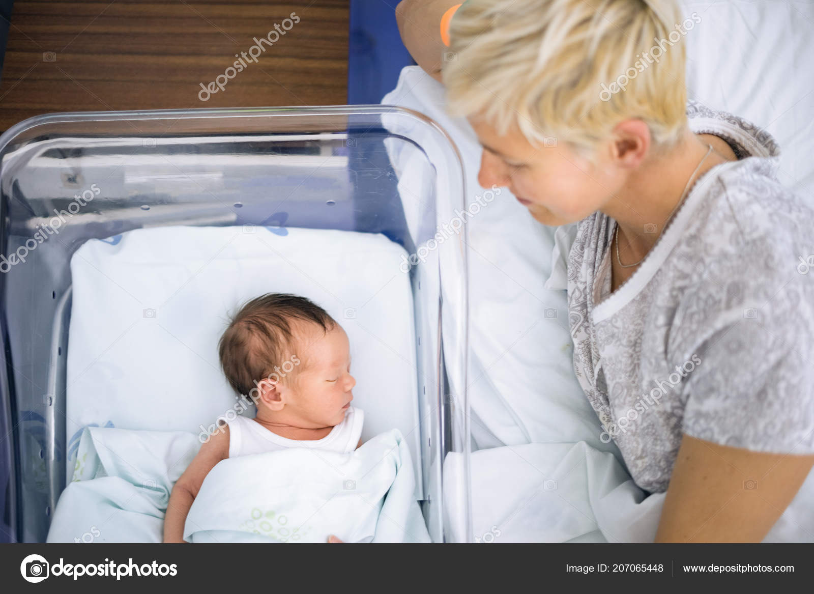 Mother Looking Love Her Newborn Baby Boy Still Hospital