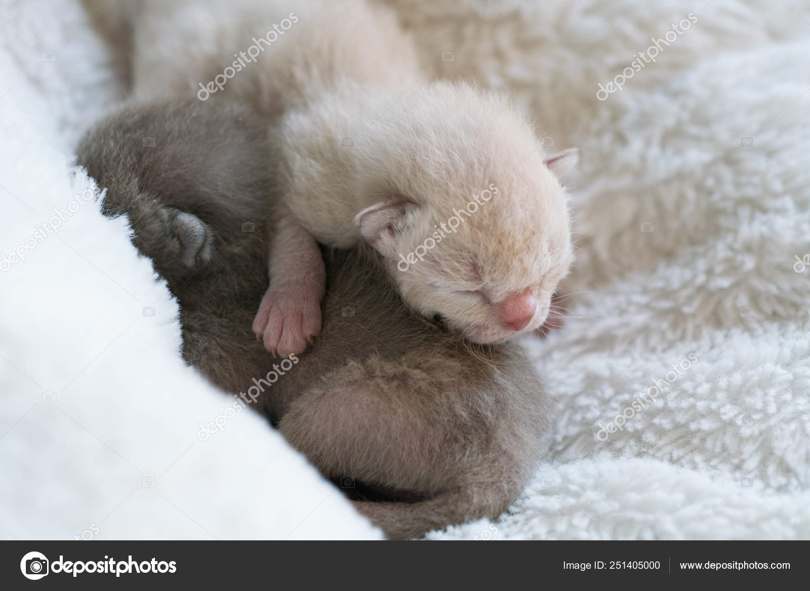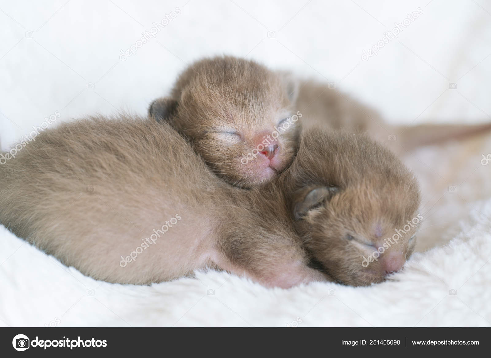 Two Newborn Kittens Burmese Breed On The Fur Litter Stock