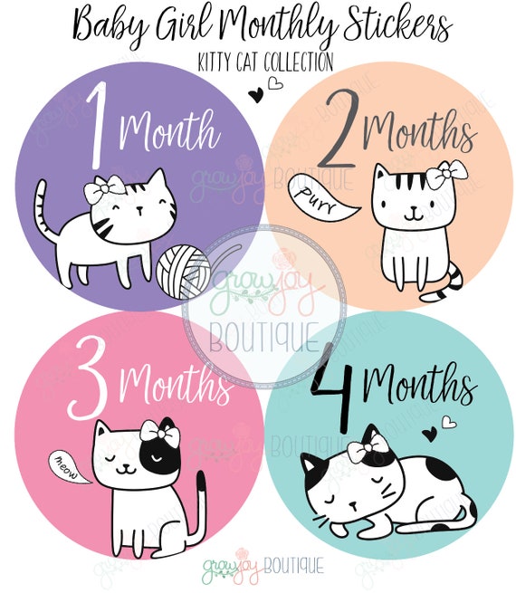 Baby Girl Monthly Stickers Cat Baby Girl Monthly Milestone Stickers Baby Girl Months Kittens Baby S First Year Stickers Baby Girl Shower