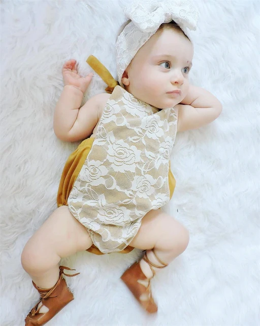 Us 5 99 29 Off Newborn Adorable Baby Girls Infant Lace Sleeveless Romper Backless Jumpsuit Clothes Outfit Sunsuit Set In Rompers From Mother Kids