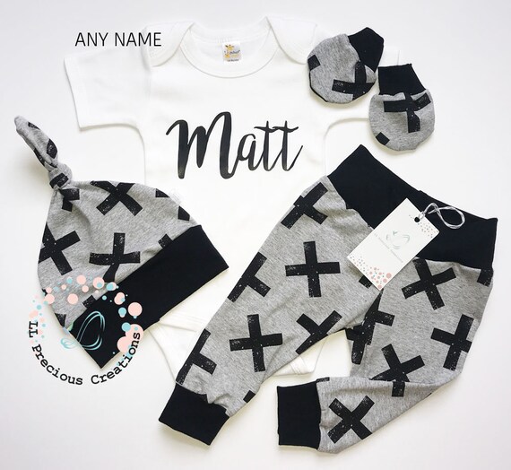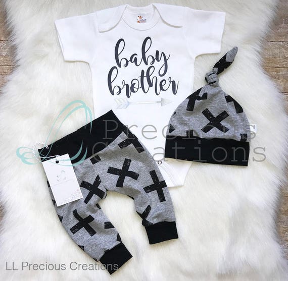 Baby Brother Outfit Coming Home Baby Boy Outfit Newborn Outfit Boy Clothes Baby Boy Leggings Hat Black Crosses Grey Outfit Baby Shower Gift