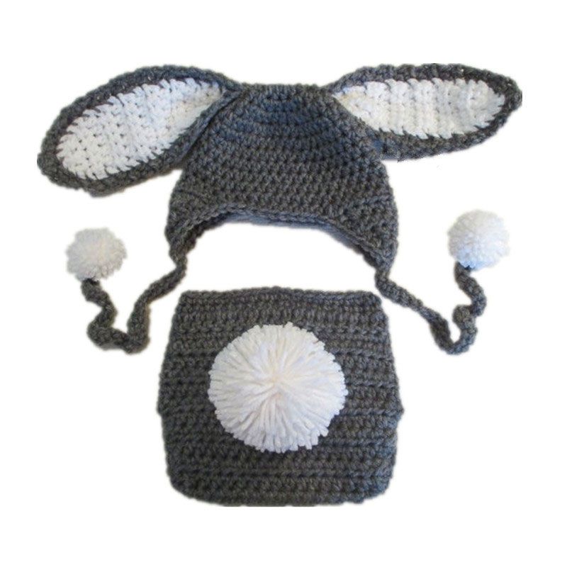 2019 Adorable Baby Easter Bunny Outfit Handmade Knit Crochet Baby Boy Girl Grey Rabbit Pompom Hat And Diaper Cover Set Infant Newborn Photo Prop From